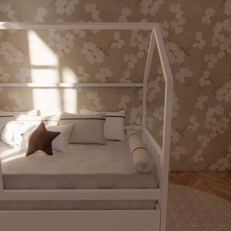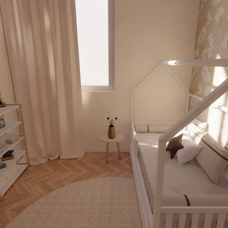 Il progetto per la cameretta di una bambina indipendente è stato realizzato con l'obiettivo di creare un ambiente delicato e rilassante.